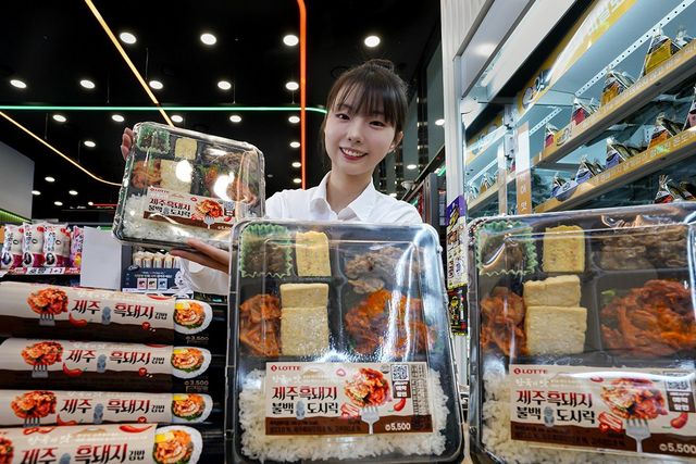 신제품은 ‘제주흑돼지불백도시락’과 ‘제주흑돼지김밥’ 두 가지다. 도시락은 100% 제주산 흑돼지를 썰어 마늘향을 더한 고추장불고기와 짭조름한 굴소스 구이로 구성했다.