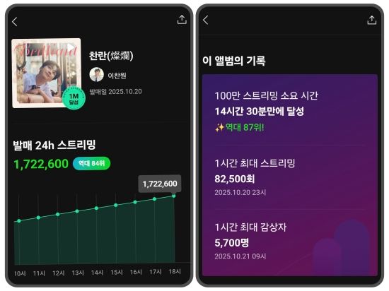 (엑스포츠뉴스 이정범 기자) 이찬원의 정규 2집이 멜론 밀리언즈 앨범에 등극했다.