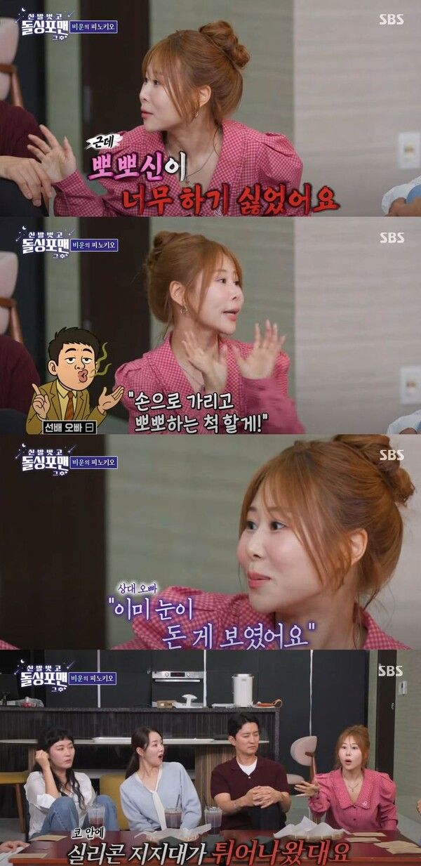 그는 "몇 주 후에 저한테서 계속 이상한 냄새가 났다"며 "병원을 갔더니 코 안에 실리콘 지지대가 튀어나왔다고 했다. 코딱지가 안 파졌는데 알고보니 그게 지지대였다"고 말해 웃음을 자아냈다.