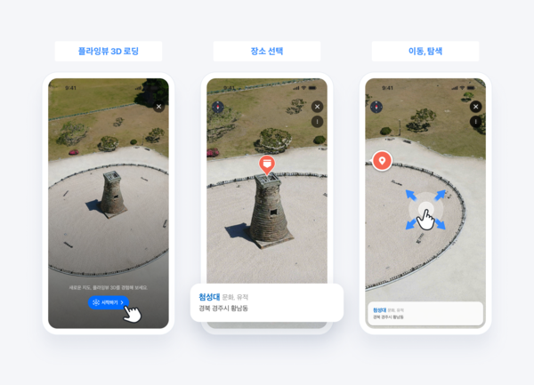 10월 23일부터 네이버지도에는 경주의 주요 랜드마크를 3차원으로 구현한 ‘플라잉뷰 3D’ 기능이 도입된다. 이를 통해 사용자들은 첨성대, 경주유적역사지구 등 유적지 주변을 현실감 있고 입체적으로 살펴볼 수 있다. 또한 네이버지도에서 ‘경주’를 검색하면 현재 이 지역에서 인기 있는 장소와 추천 맛집, 카페, 액티비티 등을 AI가 개인화해 추천하는 ‘발견피드’ 기능도 처음 도입된다. 이 기능은 사용자들의 장소 검색 편의를 높인다.
