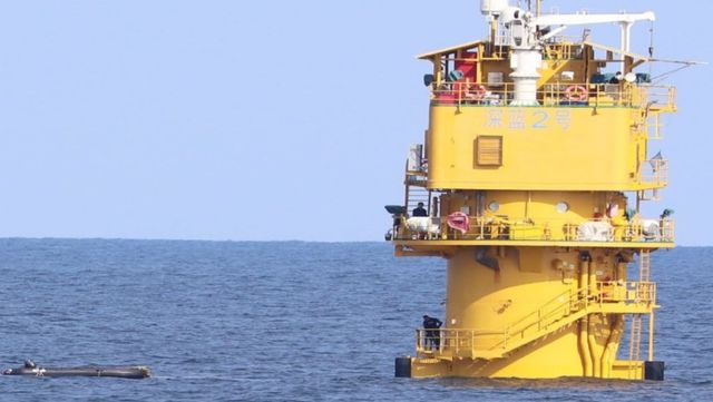중국이 서해에 설치한 구조물 '선란 2호' 사진 / 이병진 의원실 제공. 연합뉴스