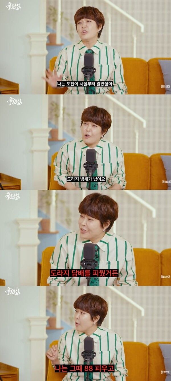 이어 "그때 대학로에 도진 씨가 나타나면 도라지 냄새가 났다. 춘천 출신인데 도라지 담배를 피웠다. 저는 '88' 피웠다"며 웃음을 터뜨렸다.