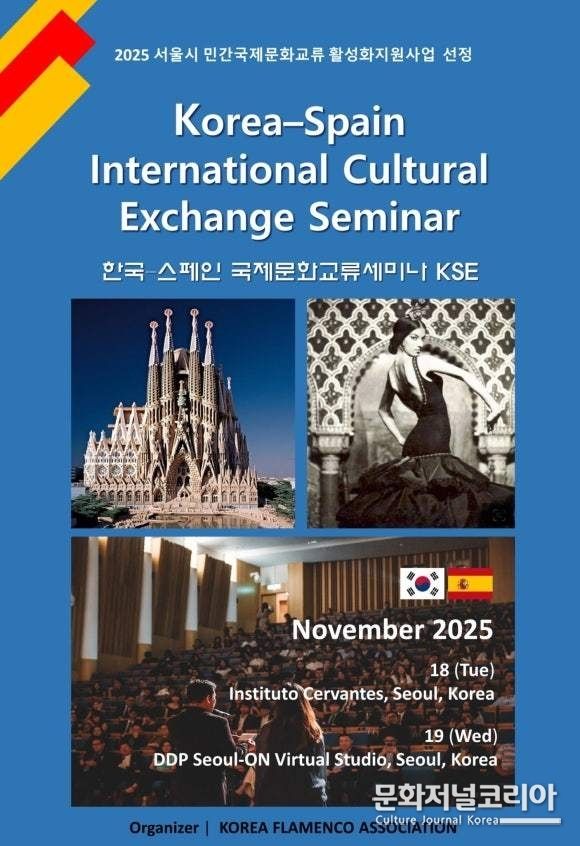 한국과 스페인 간 문화적 이해와 협력을 증진하기 위한 <한국-스페인 국제문화교류 세미나>가 오는 11월 18일부터 19일까지 양일간 서울에서 개최된다. 본 행사는 사단법인 한국플라멩코협회 주최로 열리며, 서울특별시, 주한 스페인대사관, 주한 세르반테스 스페인문화원, 스페인상공회의소, 건국대학교 행정대학원, 대한빠델협회가 후원한다.