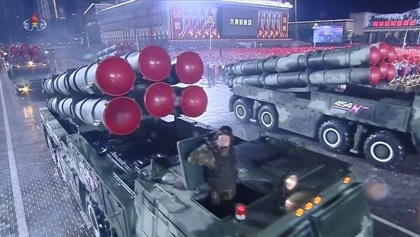 북한은 10일 노동당 창건 80주년 열병식에서 고체연료 기반의 다탄두 ICBM으로 추정되는 신형 '화성-20형'을 처음 공개했다.
