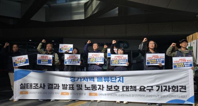 민주노총 경기본부와 공공운수노조가 경기지역 물류단지 노동실태 조사결과를 발표하고 물류센터노동자 '가짜 3.3 계약' 근절, 화물운송노동자의 안전한 노동환경 조성 등을 위한 경기도 차원의 역할을 촉구했다.