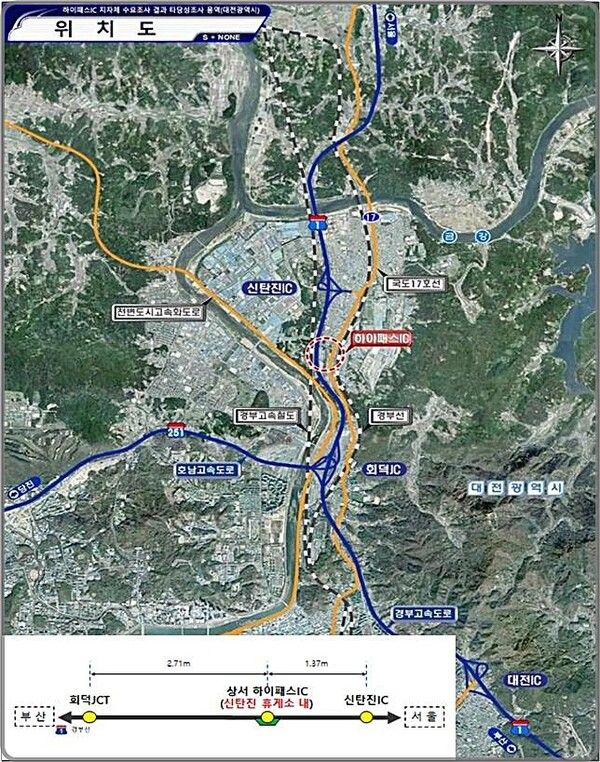 뉴시스 보도에 따르면, 상서 하이패스 나들목은 경부고속도로 280.5㎞(서울방향)에 있는 신탄진휴게소와 직접 연결되는 하이패스 전용 나들목으로 도로공사와 대전시 예산 총 62억원이 투입됐다.