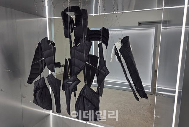 이번 팝업스토어에서는 전체 260여 종 가운데 60여 종을 선별해 공개했다. 핵심은 ‘에디션 시리즈’ 2종(이클립스 팩 다운 재킷·베스트)으로, 각각 30개, 10개의 조각으로 나뉜 모듈을 조립해 완성한 제품이다. 정밀한 폴 구조 설계로 유명한 헬리녹스의 장비 철학을 옷에 이식한 시도다. 코오롱FnC 관계자는 “자사 봉제 기술의 정수를 살려 헬리녹스의 철학을 의류로 구현했다”며 “일반 아웃도어 제품이 단순 구조로 제조되는 것과 달리, 모듈 조립 방식으로 착용성과 구조미를 모두 살린 것”이라고 말했다.
