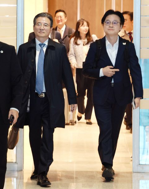 김용범 대통령실 정책실장과 김정관 산업통상부 장관은 22일 하워드 러트닉 미국 상무부 장관과의 관세협상 후속 협의를 위해 미국으로 출국했다. 귀국한 지 2~3일 만에 다시 미국행 비행기에 오른 것은 합의문 문구 조율 때문이라는 분석이 나온다.