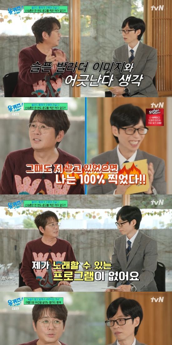 또 신승훈은 인기가 절정일 때 광고를 한 번도 찍지 않았다면서 "당시에는 직접 광고가 많았다. 슬픈 발라더 이미지와 어긋난다고 생각을 했다. 요즘엔 이미지에 도움이 되는 광고가 많지 않냐. 그때도 그런 광고이 있었으면 무조건 했다"면서 웃었다.