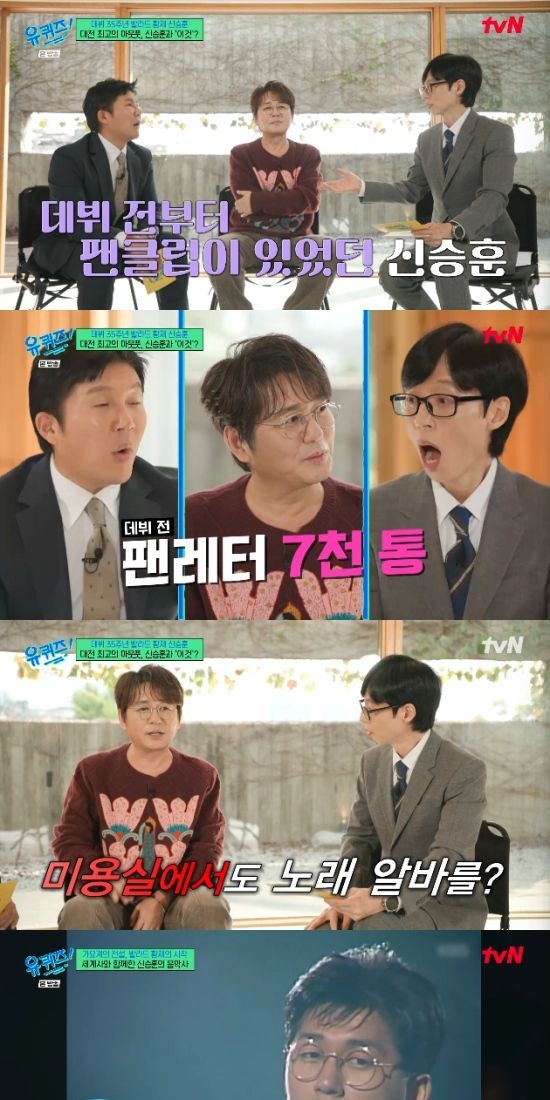 22일 방송된 tvN 예능 프로그램 '유 퀴즈 온 더 블럭'에서는 데뷔 35주년을 맞이한 '발라드의 황제' 신승훈이 출연해 음악 인생 이야기를 들려줬다.