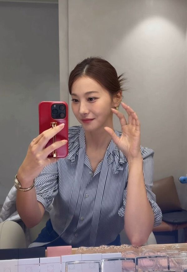 영상 속 유인영은 거울 셀카를 찍고 있다.