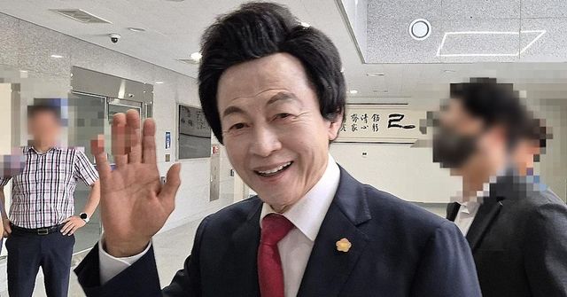 '신도 성추행 혐의'를 받는 허경영 국가혁명당 명예대표가 작년 7월 12일 경찰 조사를 받기 위해 경기북부경찰청에 출석하고 있다. / 뉴스1
