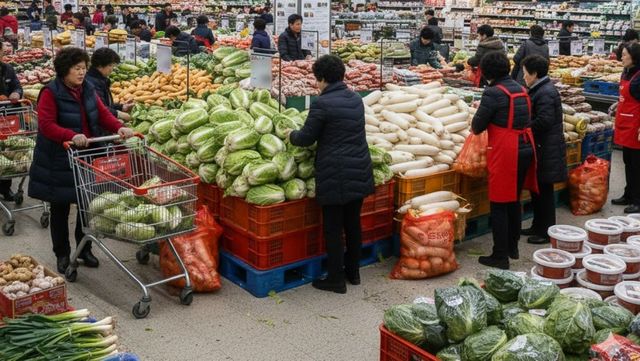 마트에서 김장 재료를 구입하는 사람들. 기사 내용을 바탕으로 AI가 생성한 자료사진.
