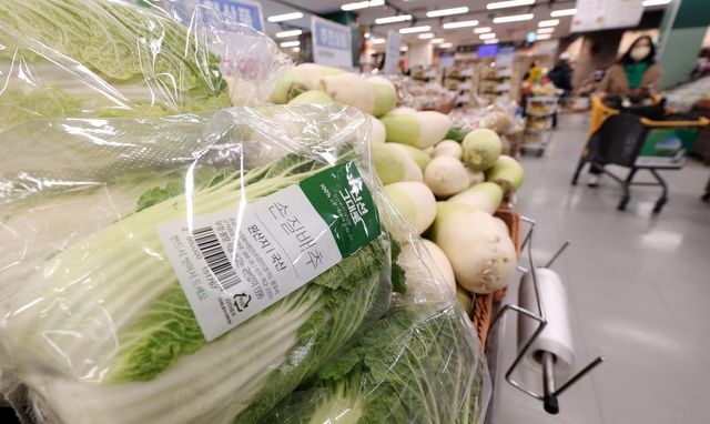 23일 한국농수산식품유통공사(aT) 농산물유통정보(KAMIS)에 따르면 지난 22일 기준 배추(상품) 소매가격은 포기당 5599원으로, 평년보다 11.5% 높지만 전년 대비 24.6% 떨어졌다. 무(상품)는 개당 2380원으로 전년 대비 32.5%, 평년 대비 13.9% 하락했다.