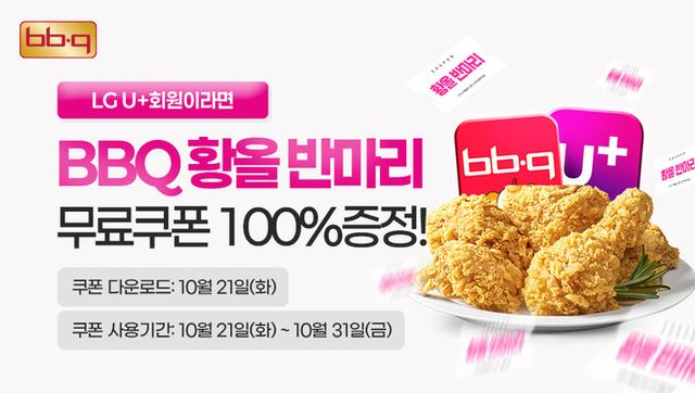 이번 프로모션은 LG U+ VIP·VVIP 고객을 대상으로 한다. 고객은 LG U+ 멤버십 앱에서 쿠폰을 발급받은 뒤 31일까지 BBQ앱 또는 웹사이트 쿠폰함에 등록해 주문 시 사용할 수 있다.