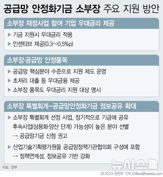 또한 이차전지·반도체·제약바이오 등 공급망 핵심분야에 적용되는 우대금리(초저리 대출)를 소부장 기업에도 동일하게 제공한다.