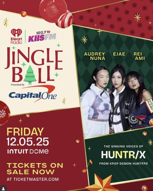 ‘케이팝 데몬 헌터스’ 극중 그룹 헌트릭스(HUNTR/X)의 가창자들이 미국의 대표적 연말 축제 ‘징글볼’ 무대에 오른다.