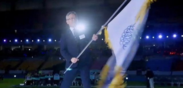 23일 제106회 전국체육대회 폐막식에서 진명기 제주자치도 행정부지사가 대회기를 인수받고 있다. 대한체육회TV 캡처