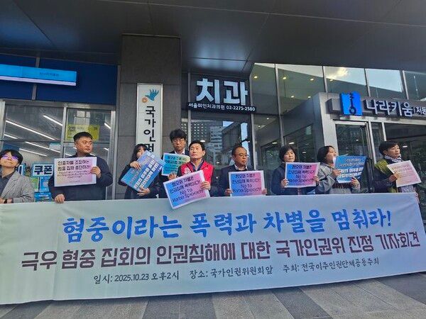 뉴시스 보도에 따르면, 단체들은 23일 오후 서울 중구 인권위 앞에서 기자회견을 열고 서울 영등포구 대림동과 중구 명동, 경기도 안산 등 이주민·관광객 밀집 지역에서 중국 이주민을 향한 모욕적 구호가 난무하고 있다고 지적하며 진정 취지를 밝혔다.