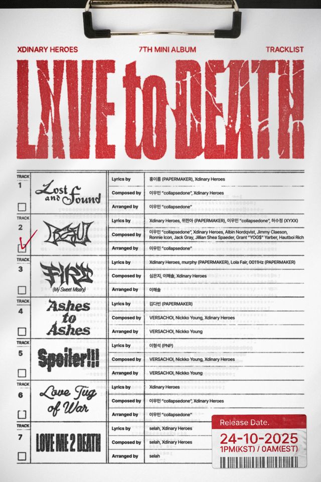 24일 발매되는 새 미니앨범 ‘러브 투 데스’는 엑스디너리 히어로즈가 지난 4년 동안 쌓아온 서사의 결론이자 또 다른 시작점이다. 이번 앨범은 ‘사랑이란 감정이 어떻게 사람을 살리고, 또 아프게 만드는가’라는 질문에서 출발한다. 타이틀곡 ‘아이씨유(ICU)’는 강렬한 기타 리프와 밴드 특유의 감정선을 앞세운 곡으로, 관계의 강렬함과 복잡함을 밴드 사운드로 표현한다.
