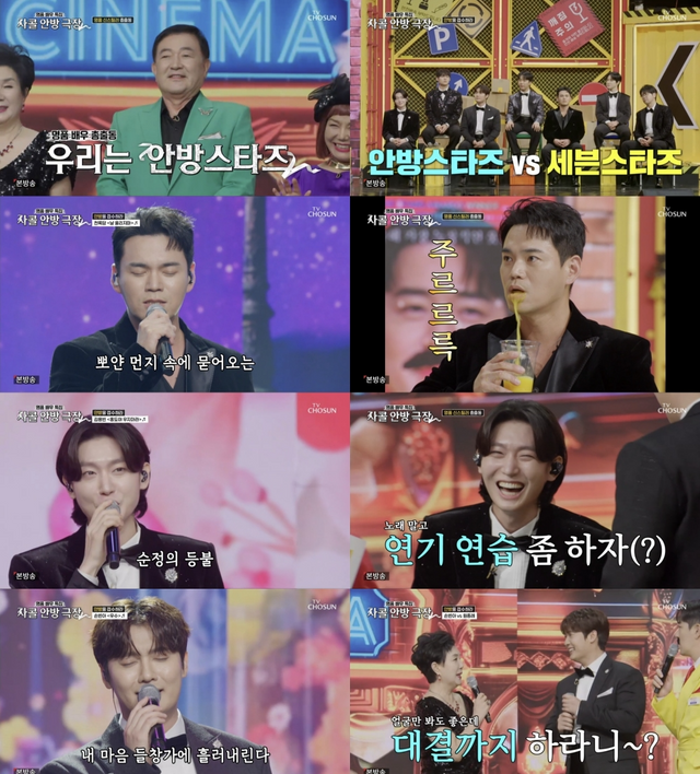 23일 방송된 TV조선 ‘사랑의 콜센타-세븐스타즈’에서는 TOP7과 신스틸러 배우들의 노래 대결이 펼쳐졌다. 배우들의 출격에 맞서 TOP7 멤버들은 OST 무대로 응수하며, 한 편의 드라마 같은 풍성한 감동을 선사했다.