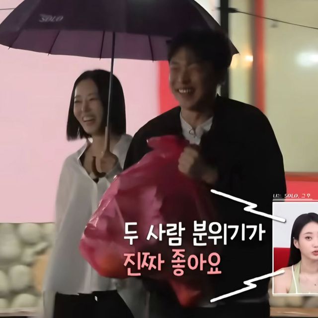 사진 속에는 '두 사람의 분위기가 진짜 좋아요'라고 말하는 '나솔사계' MC 경리의 멘트 자막과 함께 환하게 웃고 있는 미스터 강과 23기 옥순의 모습이 담겨 있다.