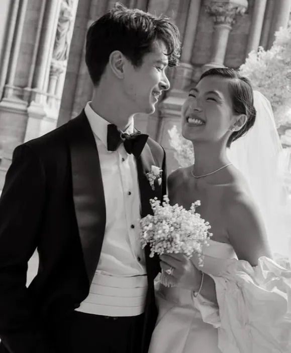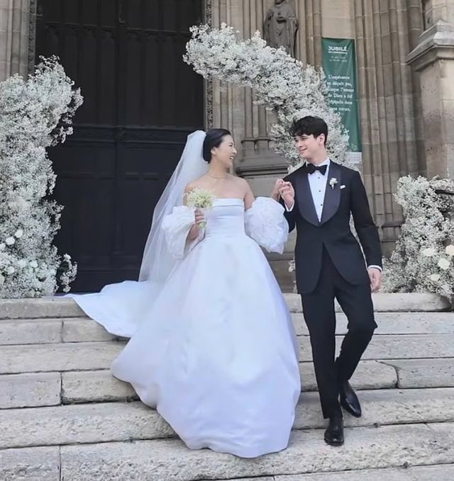 다만 신부의 드레스는 지방시가 아니었다. 정 씨는 한국계 디자이너 앤드류 권의 맞춤 드레스를 입고, 긴 성당식 베일과 마놀로 블라닉 구두를 매치했다.
