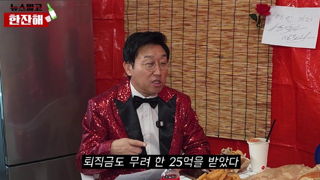 그러면서 "다른 유튜브에 나가서 '퇴직금 25억은 사실이 아니다. 알고 계신 금액에서 적은 금액을 받았습니다'라고 했더니 '25억은 아니어도 10억은 되겠지'하더라. 캐나다 갔을 때 중간 정산을 한 번 했다. 예상하시는 금액의 15분의 1, 20분의 1정도 되는 금액이다"라고 밝혔다.