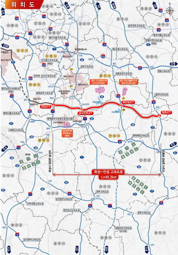 뉴시스 보도에 따르면, 이번 사업은 경기도 화성시 양감면에서 경기도 안성시 일죽면을 연결하는 약 45.3㎞ 구간의 고속도로를 건설하는 것으로, 2023년 5월 민간투자사업으로 국토부에 제안됐다. 총사업비는 2조725억원이다.