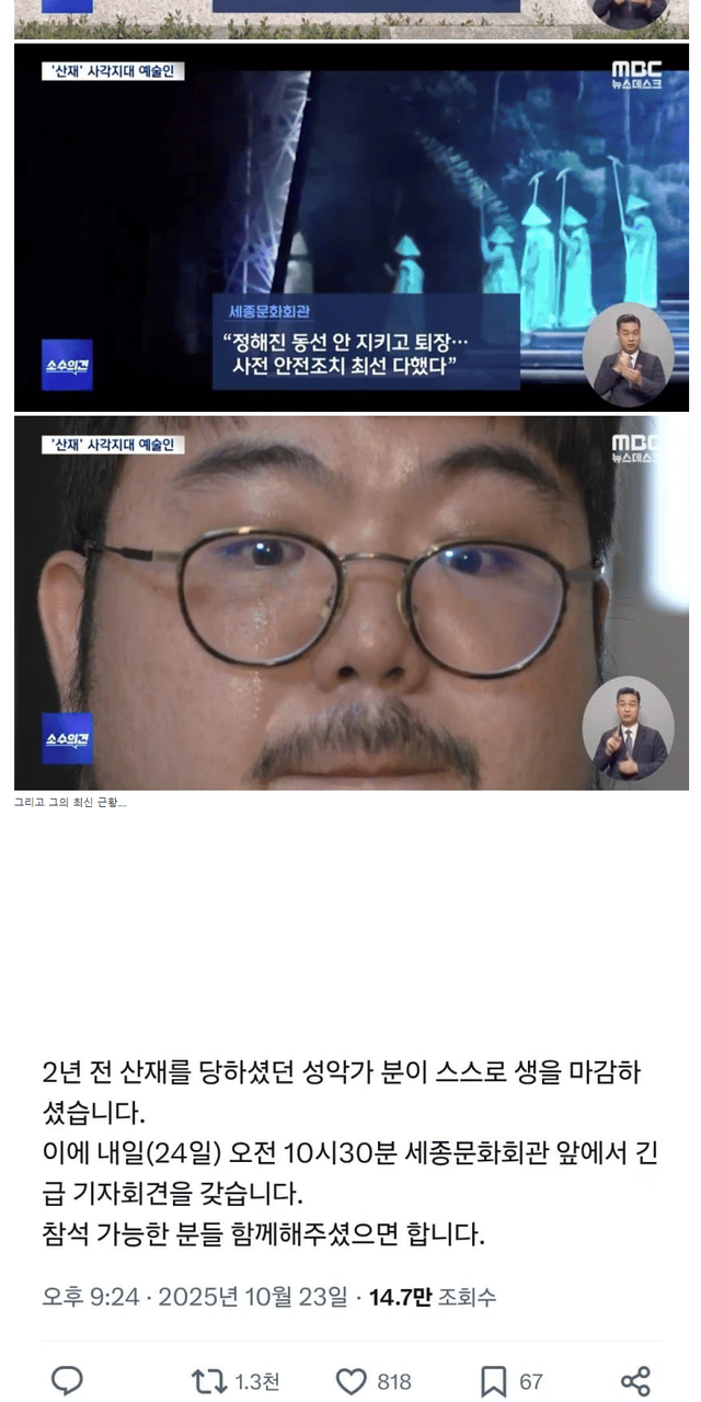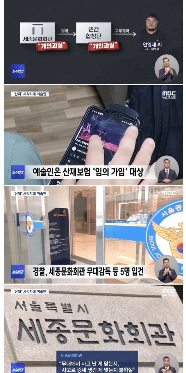 무대에서 리허설 중 사고난건데 세종문화회관 답변이...