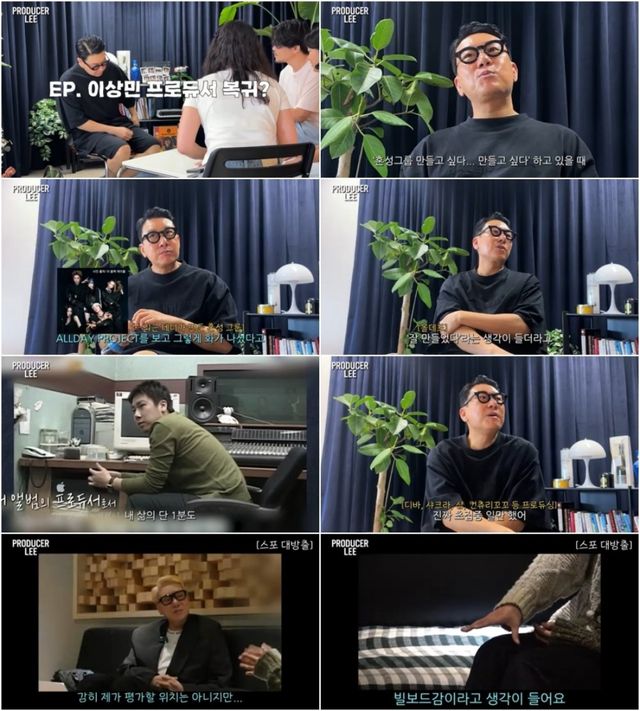 이상민은 “94년부터 가수 리더이자 제작자로서 8~9년 동안 초집중하며 일만 했다. 내 삶의 단 1분도 여가는 없었다. 그렇게 몇 팀을 만들었다”고 회상하며 지난 시간을 돌아봤다. 이어 그는 “이제는 팬덤이 남녀로 나뉘지 않고 한 팀을 함께 좋아하는 시대가 됐다”며 “남자 그룹과 여자 그룹을 굳이 구분할 필요가 없다고 느꼈다”고 말했다. 그러면서 테디가 제작한 혼성그룹 ‘올데이 프로젝트’를 언급하며 “난 너무 좋았다. 정말 잘 만들었더라”고 감탄했다.
