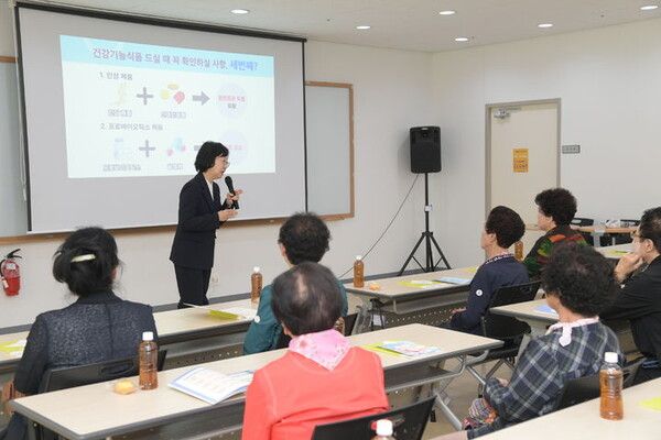 이날 교육은 복지관을 이용하는 어르신 약 40명을 대상으로 ▲건강기능식품의 정의와 올바른 구매·섭취요령 ▲의료기기의 개념과 안전한 구입·사용 요령 ▲허위·과대광고 피해예방 방법 등의 내용으로 진행됐다.