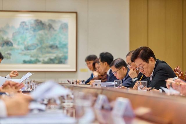 이재명 대통령이 지난 23일 서울 용산 대통령실 청사에서 열린 초국가범죄 대응 관계장관 회의에서 자료를 살펴보고 있다. / 이 대통령 SNS.
