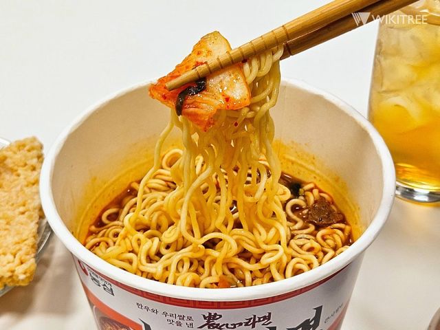 조리를 마치고 뚜껑을 열자, 특유의 구수하면서도 매콤한 라면 향이 확 퍼졌다. 처음에는 신라면과 비슷한가 싶었지만 이내 다르다는 것을 느낄 수 있었다. 매운 향 뒤로 은근한 소고기 육수 냄새가 올라오며 묘하게 정겨운 향이 코끝을 자극했다.