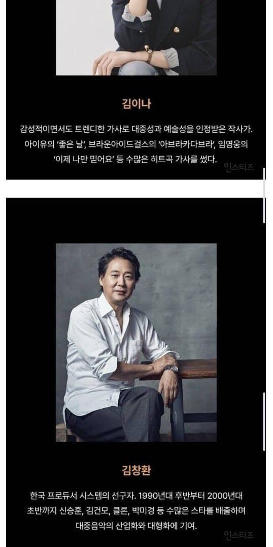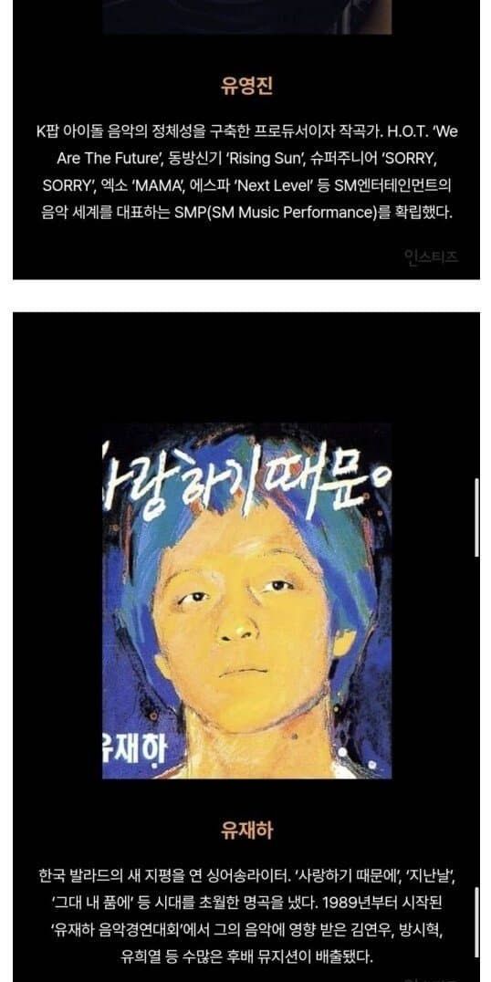 어제 공개된 한국 대중음악사 가장 영향력 있는 인물 40인