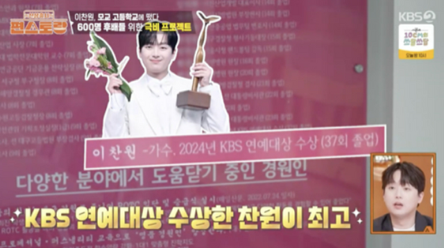이찬원은 24일 방송된 KBS2 예능프로그램 ‘신상출시 편스토랑’(이하 ‘편스토랑’) 담임 선생님과의 약속을 지키기 위해 모교인 한 고등학교를 찾았다.