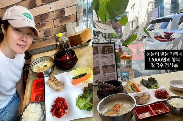 그는 이후 "혼자라서 여러 곳에서 거절당하고 겨우 혼밥 자리 발견! 눈물이 앞을 가리네, 1만2000원의 행복 칼국수 정식"이라며 식당 내부 사진과 음식 사진을 함께 게재했다.
