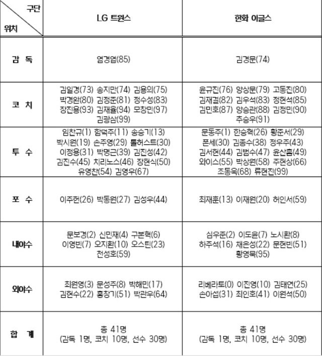김경문 한화 감독은 25일 서울 잠실구장에서 열린 미디어데이에서 "LG 트윈스는 짜임새가 좋아 플레이오프(PO)와 비교해 엔트리에 투수 1명(총 14명)을 더 넣었다"라고 밝혔다.