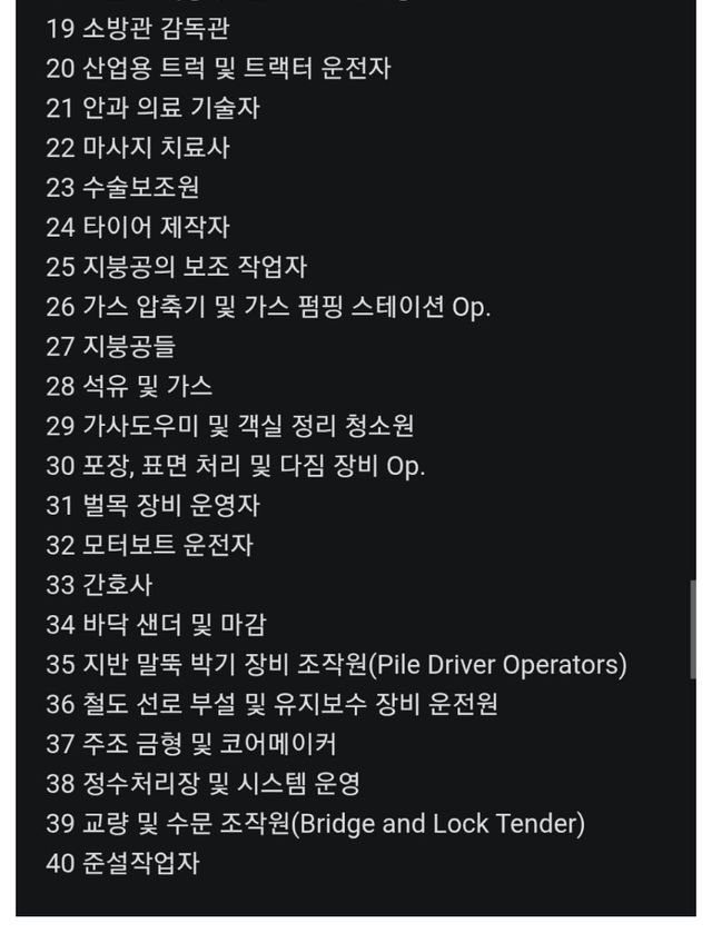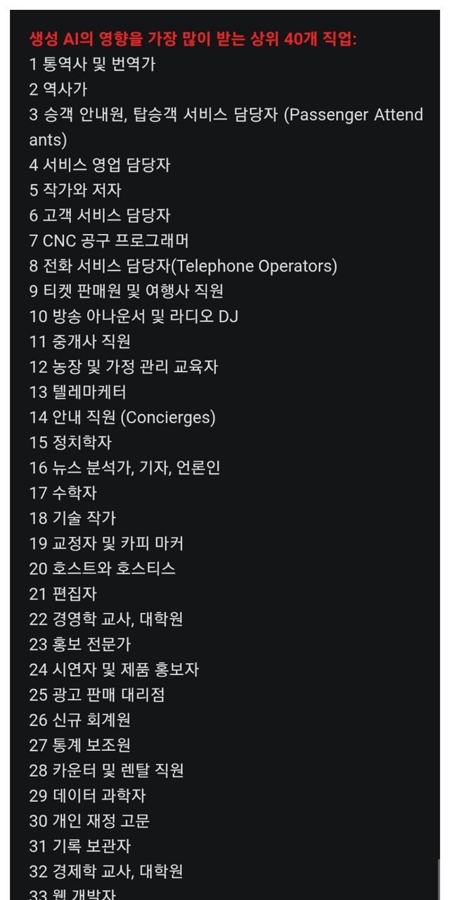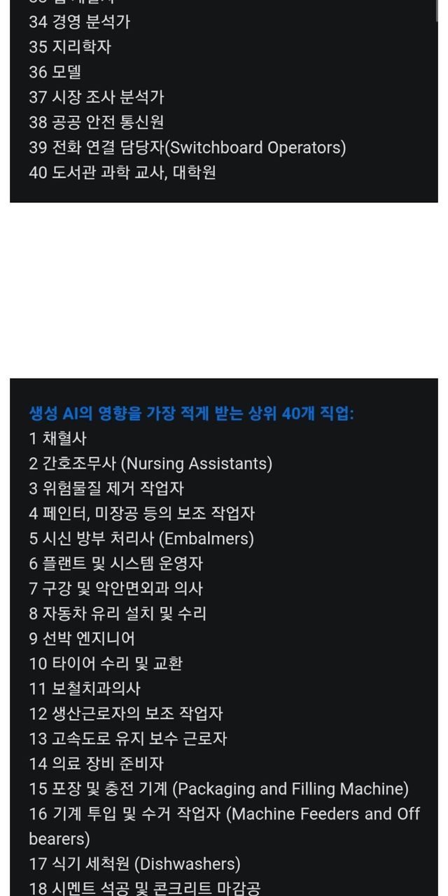 마이크로 소프트 연구진 발표 A.I에 영향을 받는 받지않는 직업군 40