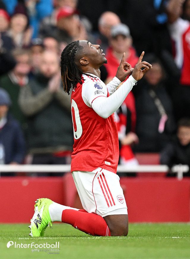 에제가 골을 기록했다. 전반 38분 프리킥 상황에서 떨어진 세컨드볼을 에제가 마무리했다. 에제는 전반 44분에도 득점을 노렸는데 수비에 막혔다. 전반은 아스널의 1-0 리드 속 종료됐다.