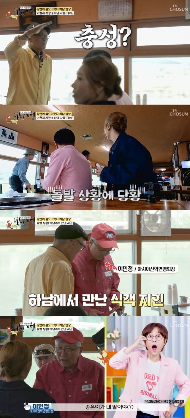 이날 식당에서 촬영을 하던 도중, 허영만은 의문의 남성에게 경례를 하며 벌떡 일어섰다.