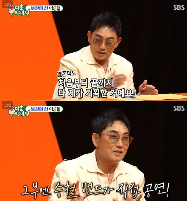 이승철은 "축가는 잔나비, 이무진이다. 사회는 김성주다. 2부 때는 제 밴드랑 다 와서 한시간 공연한다"고 밝혀 감탄을 자아냈다.