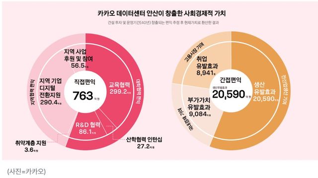 카카오가 경기도 안산시에 구축한 ‘카카오 데이터센터 안산’이 지역사회와 국가경제에 미치는 영향을 정량 분석한 결과가 공개됐다. 이번 분석은 비용편익분석과 산업연관분석을 적용해 건립 효과뿐 아니라 장기 운영 편익까지 담았다. 40년 운영 기준으로 직접편익 763억 원, 생산유발효과 2조 590억 원, 부가가치유발효과 9,084억 원, 취업유발효과 8,941명이 제시됐다.