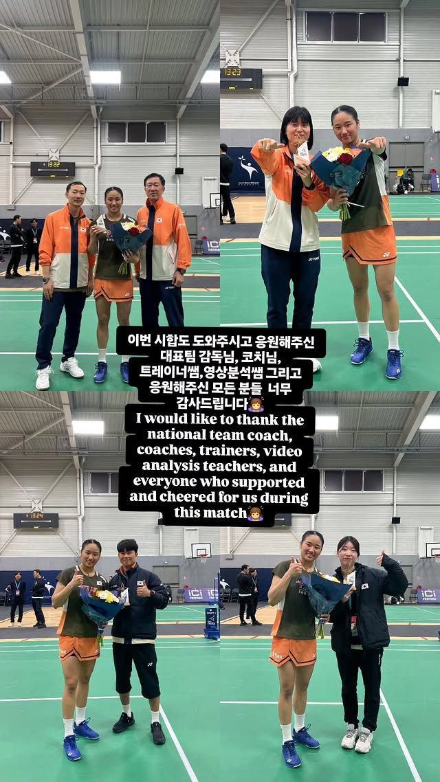 이어 "정말 치열했던 2주간이었습니다. 저희 팀과 팬분들께 감사드려요. 여러분이 큰 힘이 되었습니다!"라며 감사 인사를 전한 안세영은 "이제 좀 쉬면서 회복할 시간을 가질 때인 것 같습니다. 감사합니다, Rennes(렌, 개최도시). 내년에 또 뵙겠습니다"라며 재충전 후 돌아오겠다는 말을 덧붙였다.