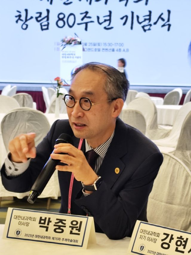 25일 대한내과학회는 스위스그랜드호텔에서 창립 80주년 기념식을 갖고 새 교과서 발간 등을 주제로 기자간담회를 진행했다.