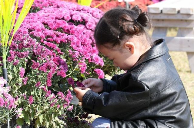 | ▲ 국화 아이 : 제10회 강진만 춤추는 갈대축제가 강진만 생태공원에서 열린 가운데 한 아이가 국화꽃 정원에서 국화를 물끄러미 쳐다보고 있다. |