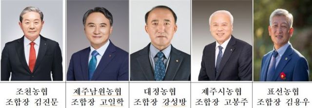 평가결과 조천농협(조합장 김진문)·제주남원농협(조합장 고일학)이 1위, 대정농협 (조합장 강성방)이 2위, 제주시농협(조합장 고봉주)·표선농협 (조합장 김용우)이 3위를 차지하는 등 도내 5개 농협이 우수 농축협으로 선정됐다.