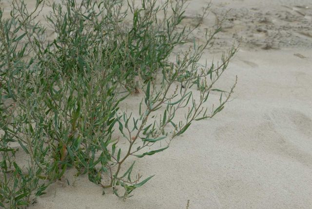 이 식물은 높이 30~70cm 정도로 자라며, 잎은 길이 3~10cm의 피침형으로 뾰족하다. 표면에는 하얀 가루(분백)가 덮여 있어 수분 증발을 막고 햇빛 반사를 줄인다. 7~8월 사이에는 연한 녹색의 작은 꽃이 피고, 가을엔 지름 2mm 정도의 흑색 종자를 맺는다. 우리나라 전역의 조간대, 간척지, 모래땅에서 흔히 볼 수 있으며 가는명아주나 좁은잎갯능쟁이라고도 불린다.