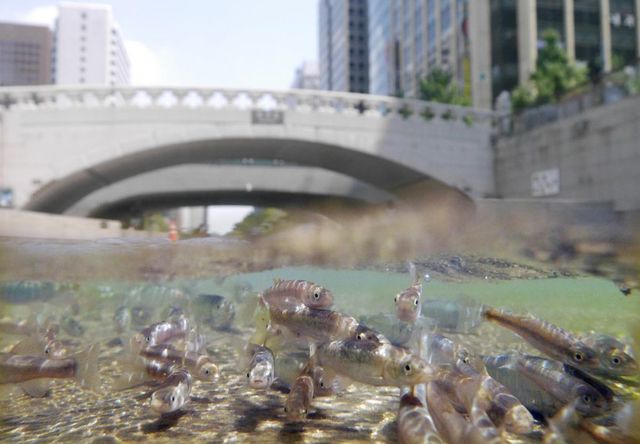 국립중앙과학관은 청계천 복원 20주년을 맞아 서울시설공단과 함께 진행한 담수어류 학술조사에서 총 32종 1품종을 확인했다고 27일 밝혔다. 복원 이전 4종에 불과했던 어류 수가 8배 늘어난 셈이다.