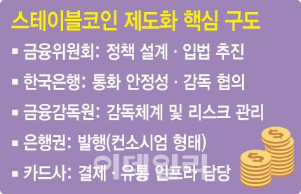 이에 따라 은행은 합작법인을 통해 스테이블코인을 발행하고 카드사는 결제 인프라를 맡는 ‘분업형 모델’이 유력하게 거론된다. 금융당국 관계자는 “은행이 발행하고 카드사는 가맹점 결제망을 통해 유통하는 역할이 가능하다”며 “카드사의 가맹점 네트워크는 스테이블코인 확산의 핵심 인프라가 될 수 있다”고 말했다.